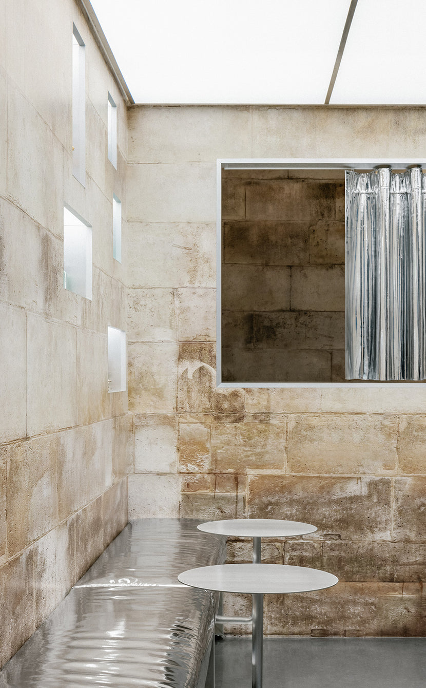 Les murs sont recouverts de pierres de taille en écho aux façades des immeubles parisiens.