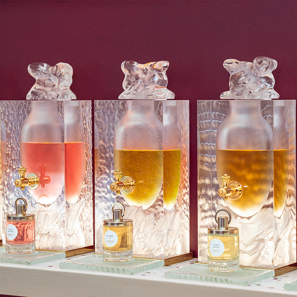Our fragrance fountains, made of Daum or Baccarat crystal, made our shops an attractive destination and a precious emblem for our vision of Haute Parfumerie.