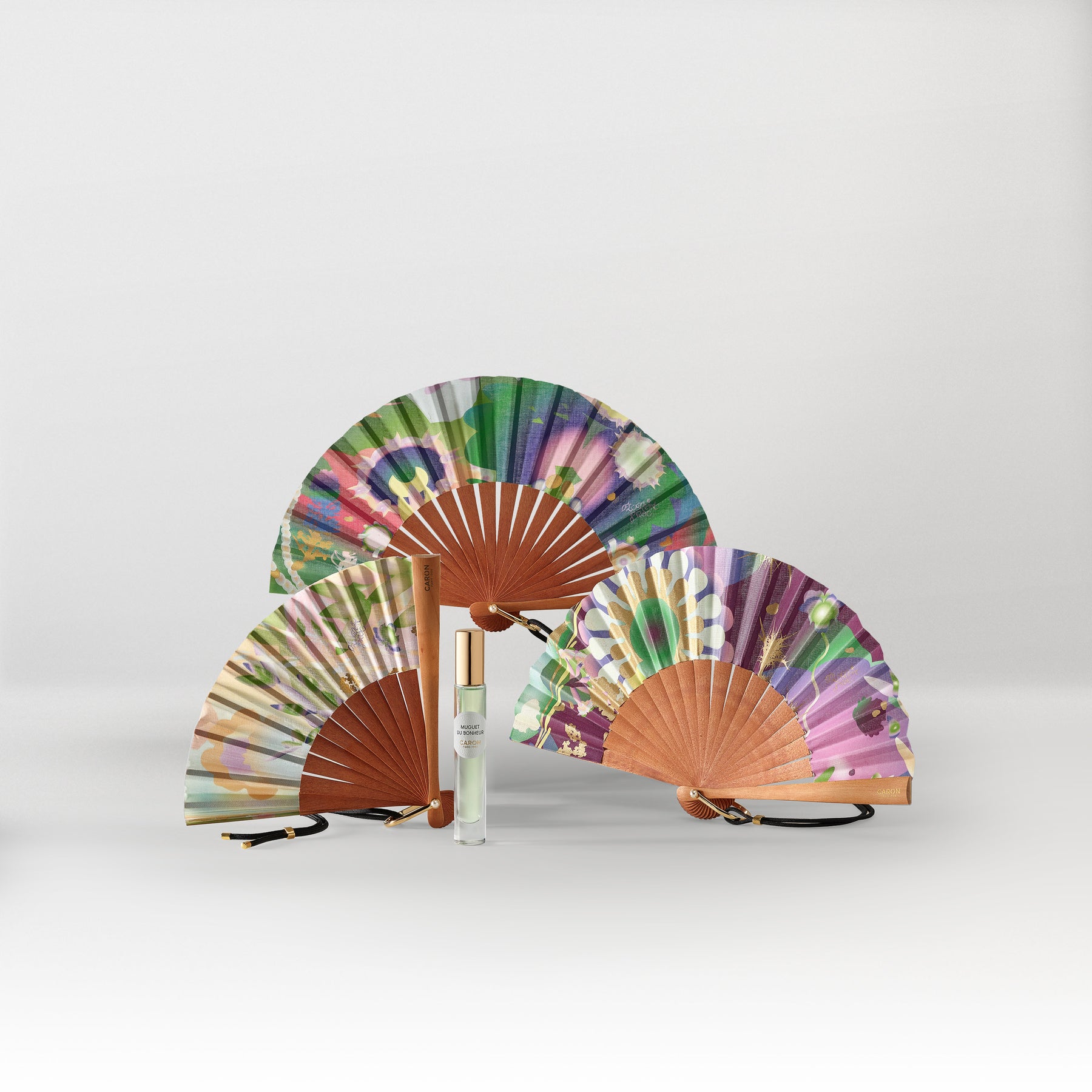 La Maison CARON s'associe au savoir-faire de DUVELLEROY, Maison de Haute-Eventaillerie parisienne pour une collection originale d'éventails à parfumer. Clin d'œil aux nouveaux codes de la Maison CARON, chaque éventail a été assemblé à la main selon un savoir-faire artisanal précis. Ainsi la Maison CARON invite à une nouvelle gestuelle parfumée.